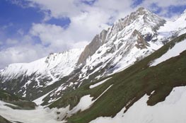 About 20 kms. south of Rangdum stands the Pazila watershed across which lies Zanskar, the most isolated of all the trans Himalayan Valleys. The Panzila Top (4401 m) is the picturesque tableland adorned with two small alpine lakes and surrounded by snow covered peaks. As the Zanskar road winds down the steep slopes of the watershed to the head of the Stod Valley, one of Zanskar's main tributary valleys, the majestic Drang-Drung glacier looms into full view. The Drang-Drung glacier is perhaps the largest glacier in Ladakh, outside the Siachen formation. It is from the cliff-like snout of this extensive glacier that the Stod or Doda River, the main tributary of river Zanskar, rises. Zanskar comprises of a tri-armed valley system lying between the Great Himalayan Range and the Zanskar mountain. The three arms radiate like star towards the west, north and south from a wide central expanse where the region's two principal drainage meet to form the main Zanskar River.