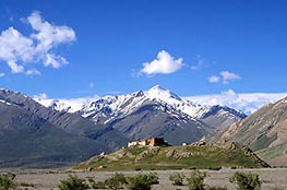 Rangdum is situated about 130 kms south-east of Kargil and falls midway between Kargil and Padum. Due to its remoteness from inhabited parts either of Suru or Zanskar, this area of wild beauty is almost haunting, while its isolation is near perfect even as the unpaved Zanskar road traverses its length. The chief attraction of this area is an imposing 18th century Buddhist monastery with about 40 monks in residence.
